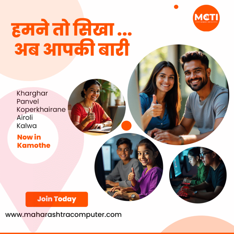 At Maharashtra Computer Panvel, we provide a wide range of courses catering to students, job-seekers, and working professionals. he following are a few of our most popular programs: